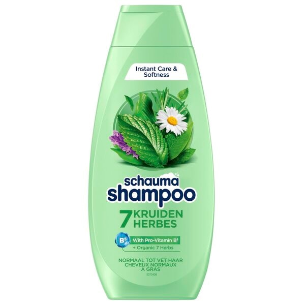 Schauma 7 Kruiden Shampoo bevat biologisch 7 kruidenextract en is geschikt voor normaal tot vet haar.